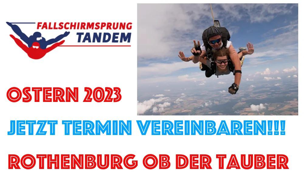 Tandemsprung Rothenburg ob der Tauber: Unsere Tandemsprung Kunden aus der Region um Rothenburg ob der Tauber fiebern zu beginn der Sprungsaison bereits voller Vorfreude den Ostern Feiertagen entgegen. An Ostern Nur von Karfreitag bis Ostermontag sind nämlich die Fallschirmspringer und das bunte Flugzeug, die Pink-Skyvan wieder am Flugplatz.