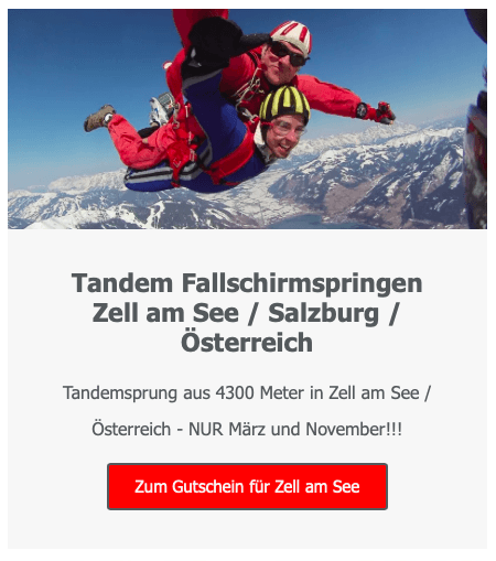 Wer schaut nicht gerne in die Berge, die weite atemberaubende Kulisse wenn man am Fuße der Alpen steht? Wir bieten hier die etwas andere Perspektive auf die schöne Berglandschaft in Zell am See. Beim Tandemsprung aus 4300 Meter Höhe ist es einfach nur ein gigantisches Abenteuer.